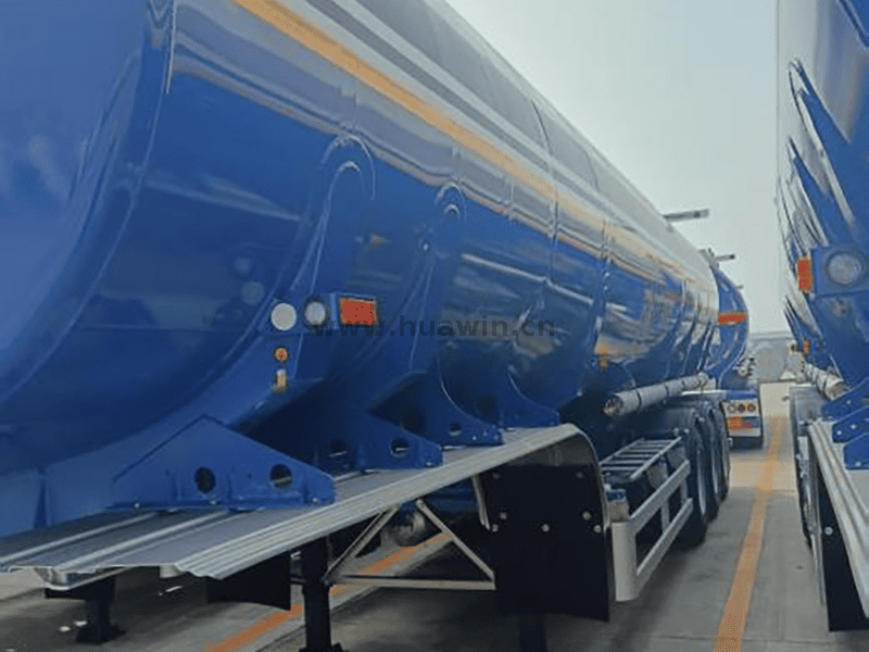 A carroceria do caminhão-tanque de alumínio não é fácil de gerar eletricidade estática. Então, o índice de segurança é maior que o do petroleiro de aço carbono. A tara dos reboques e petroleiros de alumínio também é relativamente mais leve. Portanto, isso poderia reduzir o custo de transporte. Este trailer e caminhão-tanque foi projetado para clientes da África Oriental. Sua capacidade de carga é de 46 mil litros. Todo o corpo do petroleiro está dividido em 6 compartimentos. O trailer está equipado com suspensão pneumática e o eixo dianteiro é elevável. Quando o reboque e o caminhão-tanque de alumínio funcionam sem carga útil, o eixo elevável pode reduzir o desgaste dos pneus. Como este reboque e petroleiro de alumínio serão enviados para o mercado africano. Assim, também adota séries de design para fins de segurança e reforço.